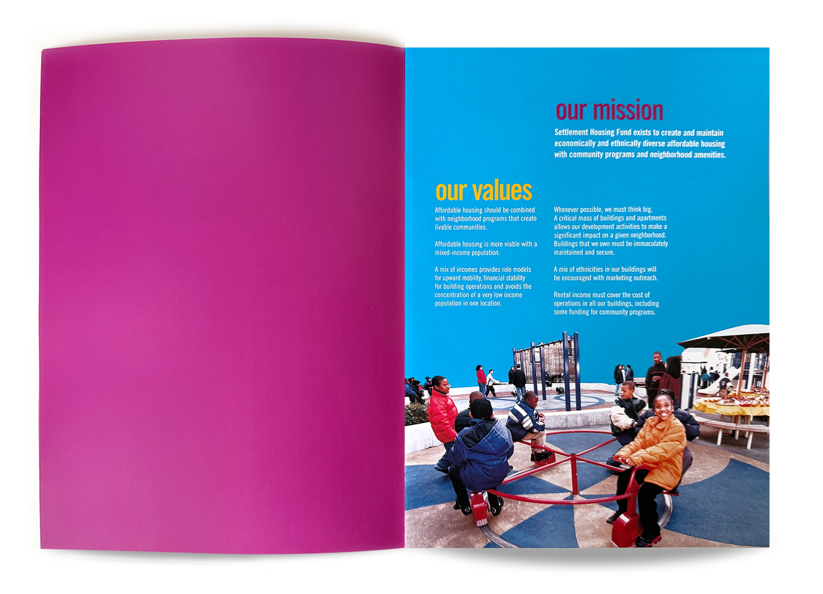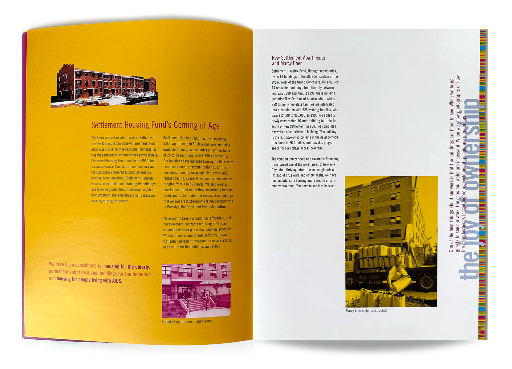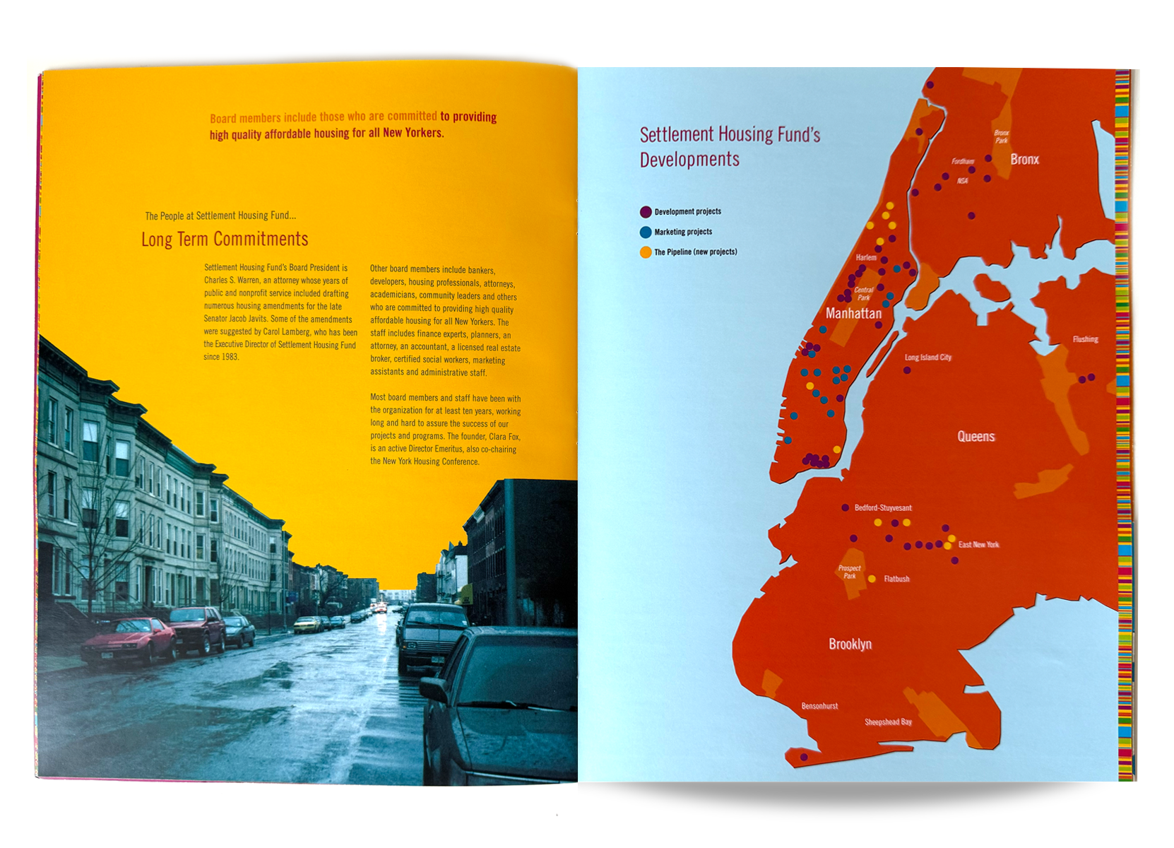 Annual Report for Settlement Housing Fund, which is a nonprofit organization creating affordable housing for seniors and the diverse, working-class communities of New York City’s Lower East Side.