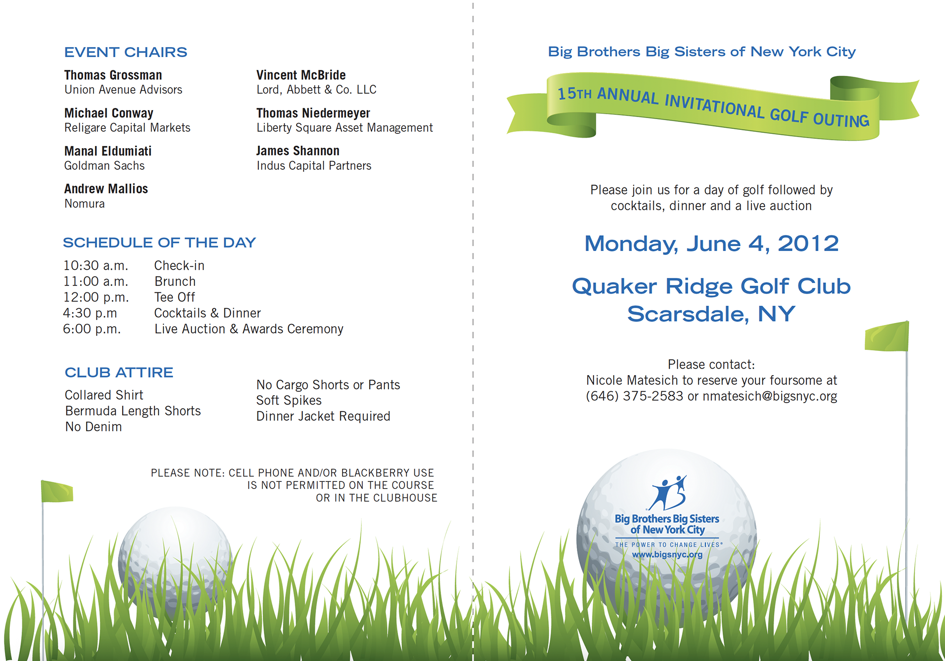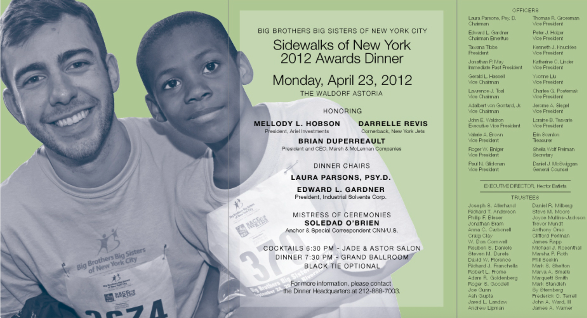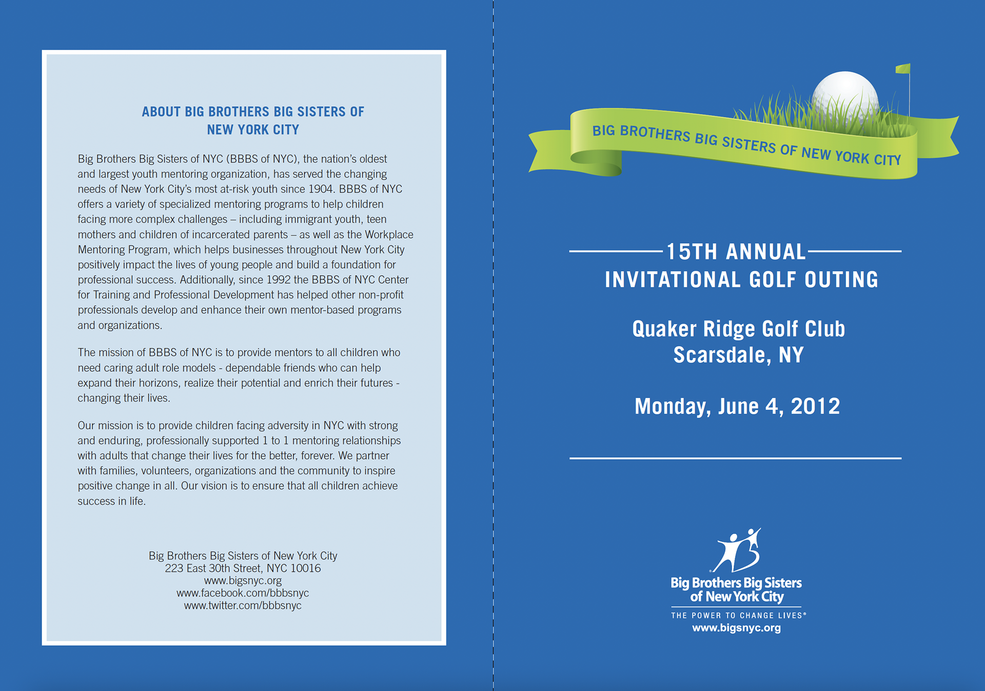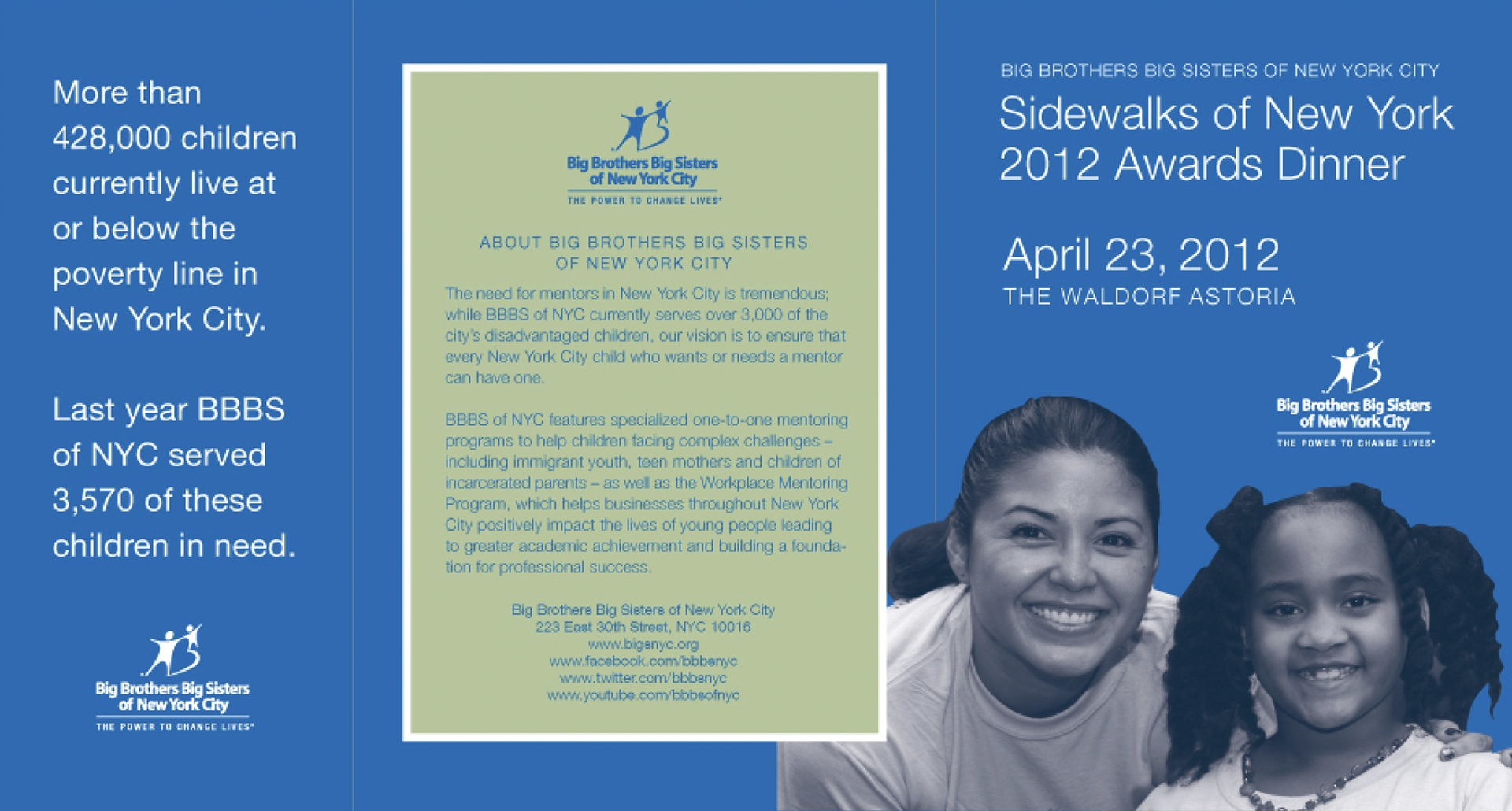 Graphic design support for Big Brothers Big Sisters of NYC, including fundraising invitations designed to engage donors and supporters while highlighting the organization’s mission and impact.